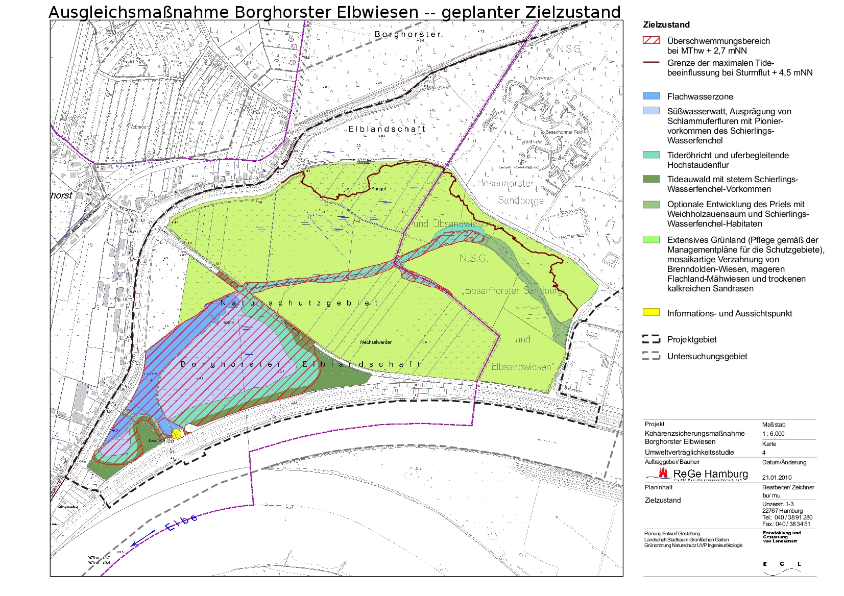 Mit ihren mehrfach nachgebesserten Plänen glauben die Projektträgerin, die Behörde für Wirtschaft, Verkehr und Innovation (BWVI), und ihr durchführendes Büro, die stadteigene Projekt-Realisierungsgesellschaft mbH (ReGe), einen Weg gefunden zu haben, mit der sie hier die Kontrolle über das Element Wasser gewährleisten können. Die Wiedervernässung bedeute keine Gefahr für Häuser und Grundstücke, heißt es, alles sei abgesichert. Doch diese vollmundigen Behauptungen beruhigen in keinster Weise, denn sie basieren sämtlich auf modellhaften Berechnungen. Und sie widersprechen der Erfahrung. Mit der Wiedervernässung der Borghorster Elbwiesen, so ist nicht gänzlich auszuschließen, könnten der südöstlichen Zipfel von Hamburg und das angrenzende Vossmoor sowie Teile von Escheburg und Geesthacht zurück ins letzte Jahrhundert katapultiert werden, als Sumpf und Morast die umliegende Landschaft bestimmten.