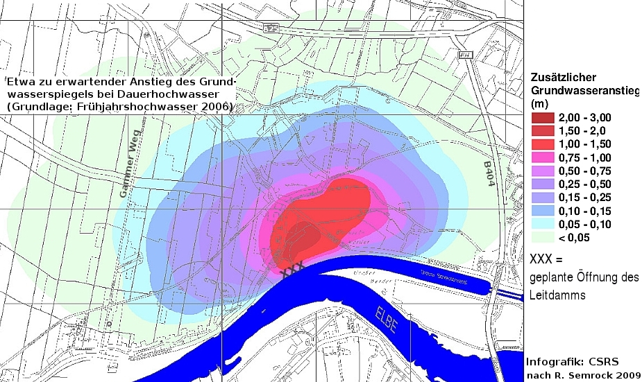 Denn in Hochwassersituationen sitzen die Anrainer jetzt schon, auch ohne die Wiedervernässung, buchstäblich auf einem nassen Schwamm. In der Planfeststellungsunterlage zur Kohärenzsicherungsmaßnahme Borghorster Elbwiesen erklären die hydrogeologischen Gutachter völlig korrekt: »Im Umfeld der geplanten Kohärenzsicherungsmaßnahme ist im Istzustand teilweise eine Vernässungsproblematik gegeben.«