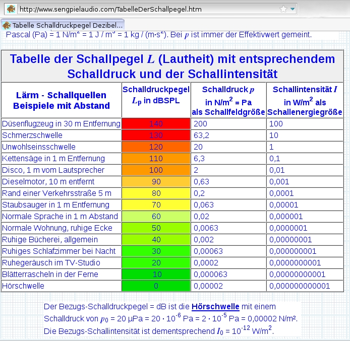 Spektren einiger tieffrequenter Geräusche im Verhältnis zur Hörbarkeitsschwelle des Menschen. Quelle: DNR 2011