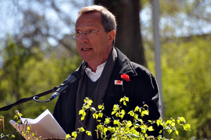 Hauptredner Klaus Bullan (Vorsitzender GEW Hamburg) unterstrich die historische Bedeutung der Gewerkschaften für mehr soziale Gerechtigkeit